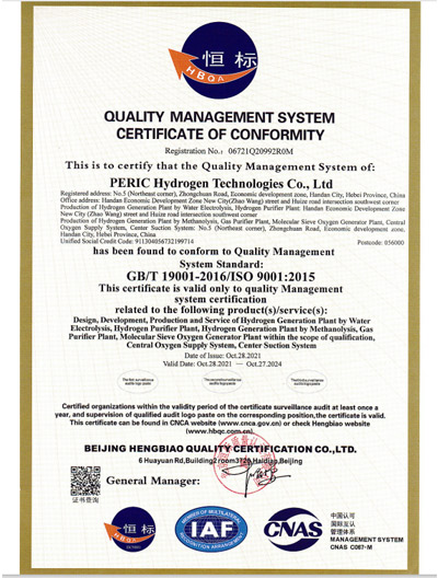 中國船舶重工集團公司第七一八研究所1998年通過GB/T19001質量體系認證,2005年通過中國質量認證中心的CCC認證,2008年通過環境和職業健康安全管理體系認證,實施QEO一體化管理。是世界較大的制氫研究、生產基地。